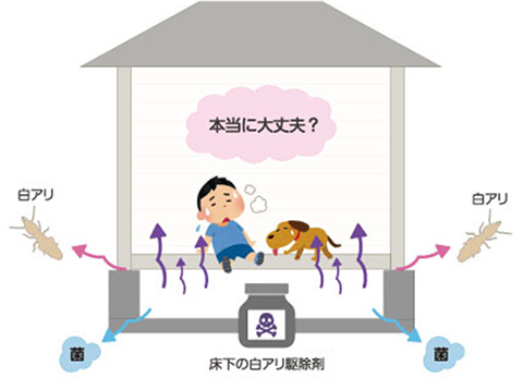 そのような密閉された住まいの中で、床下にシロアリ対策として毒性の強い薬剤が使用されている場合があります。