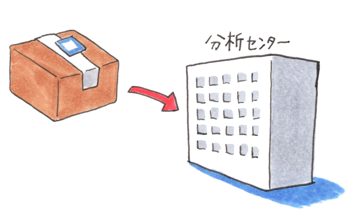 サンプリングしたサンプラーを分析依頼書と一緒に指定の分析センターにクール宅急便にてご返送していただきます。