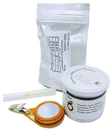 パッシブ法は、拡散原理を利用してゆっくりと吸着させるので、通常8時間以上の測定時間が必要とされ、その間の平均値を測定します。通常の生活状態での室内の化学物質濃度が一日を通してどれくらいかを調べる場合や、サンプラーを身につけて一日の曝露量を測定するのに適しています。